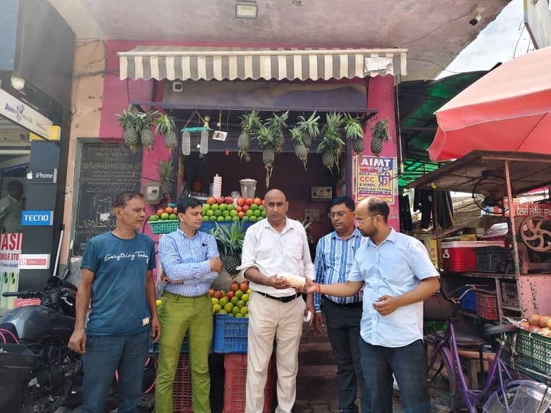 विशेष छापामार अभियान में किला स्थित राजू पुत्र धर्मदास के जूस प्रतिष्ठान से अनार दाना और अनार जूस का 01-01 नमूना लिया गया।