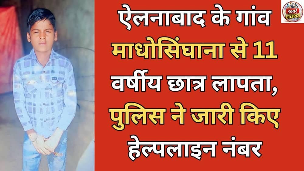 ऐलनाबाद, 17 फरवरी (डॉ. एम.पी. भार्गव, विशेष संवाददाता)। ऐलनाबाद के निकटवर्ती गांव माधोसिंघाना से 11 वर्षीय छात्र अभिषेक गोस्वामी के लापता होने का मामला सामने आया है। घटना के बाद से परिजनों में गहरा सदमा है और पुलिस ने छात्र की तलाश के लिए व्यापक स्तर पर अभियान शुरू कर दिया है।