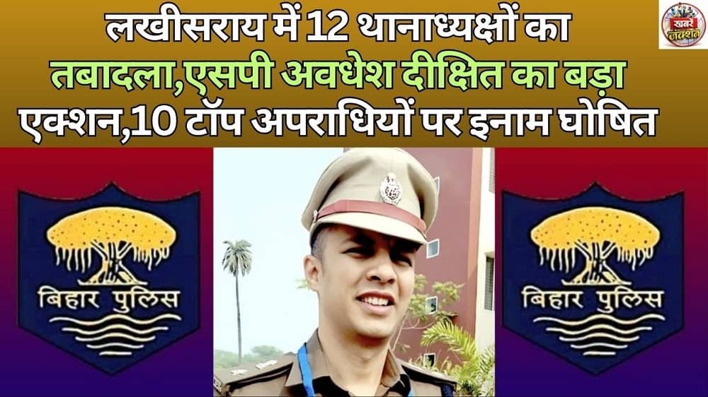 लखीसराय में 12 थानाध्यक्षों का तबादला,एसपी अवधेश दीक्षित का बड़ा एक्शन,10 टॉप अपराधियों पर इनाम घोषित