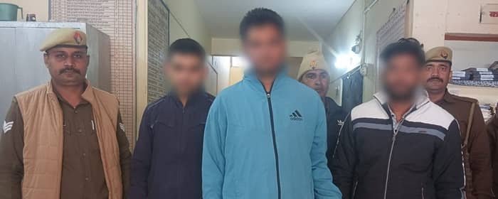 बुलंदशहर – रविवार को एसटीएफ मेरठ व गुलावठी पुलिस द्वारा मिठ्ठेपुर तिराहे के पास से अन्य प्रदेशो के फर्जी कागजात तैयार कर एसएससी (जीडी) व अन्य विभागो मे नौकरी लगवाने वाले तीन शातिर अभियुक्तो तरूण पुत्र सत्यवीर सिंह निवासी मौहल्ला विकास कालौनी थाना गुलावठी जनपद बुलन्दशहर, रोबिन पुत्र रविन्द्र निवासी बनबोई थाना गुलावठी जनपद बुलन्दशहर एवं सचिन पुत्र मुकेश कुमार निवासी भटोना थाना गुलावठी जनपद बुलन्दशहर को फर्जी कागजात व स्विफ्ट गाडी, लैपटॉप, मोबाईल आदि सहित गिरफ्तार किया गया।