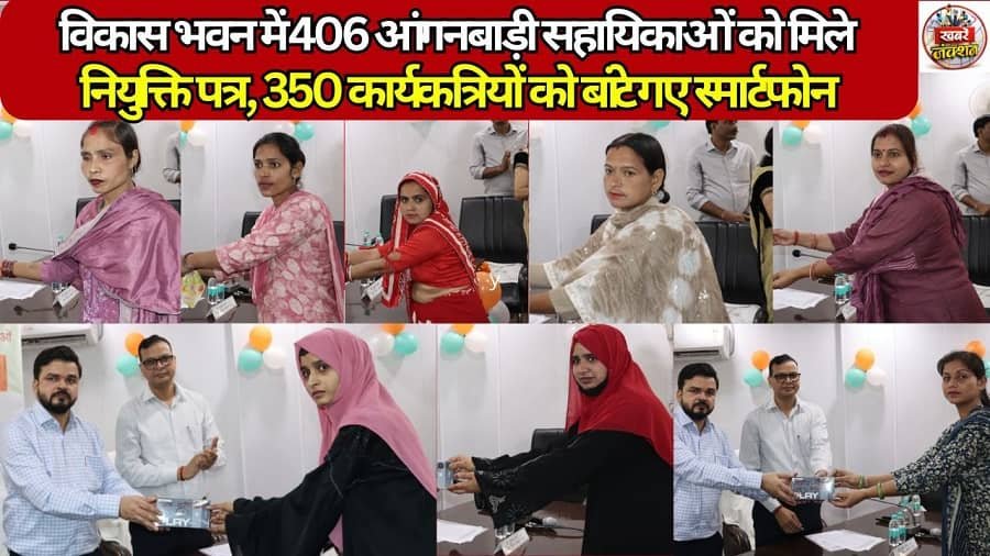 विकास भवन में 406 आंगनबाड़ी सहायिकाओं को मिले नियुक्ति पत्र, 350 कार्यकत्रियों को बांटे गए स्मार्टफोन