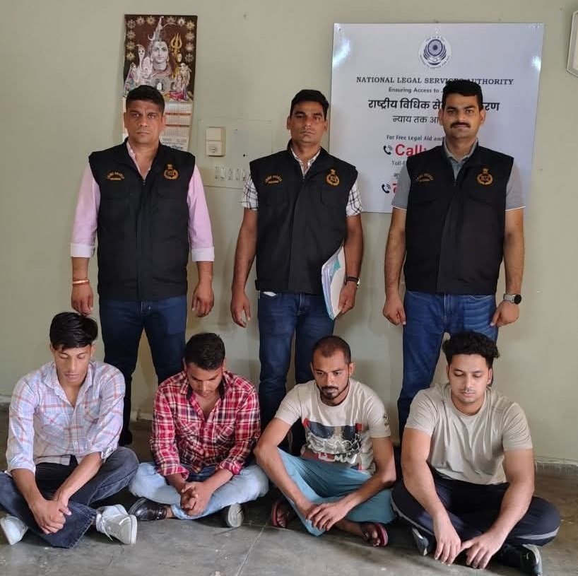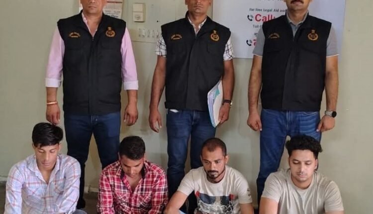 उन्होंने आगे बताया कि क्राईम ब्रांच सेक्टर 30 की टीम ने तकनीकी आधार पर कार्रवाही करते हुए देवेंद्र (36), बंटी (28), मोनू (23) व उदय (20) वासी तिरखा कालोनी बल्लभगढ फरीदाबाद को गिरफ्तार किया है।