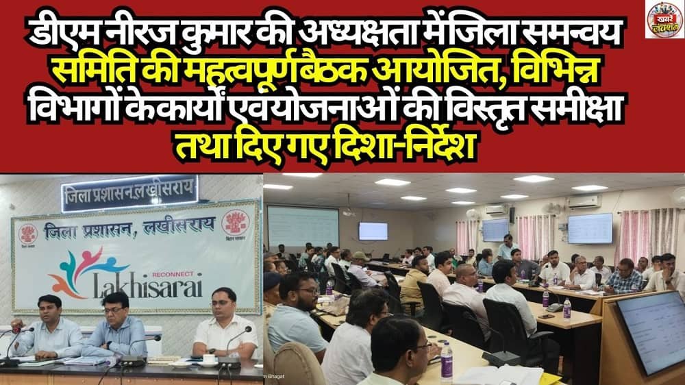लखीसराय(सरफराज आलम)जिला पदाधिकारी,नीरज कुमार की अध्यक्षता में समाहरणालय लखीसराय स्थित मंत्रणा कक्ष में जिला समन्वय समिति की एक महत्वपूर्ण बैठक आयोजित की गई।