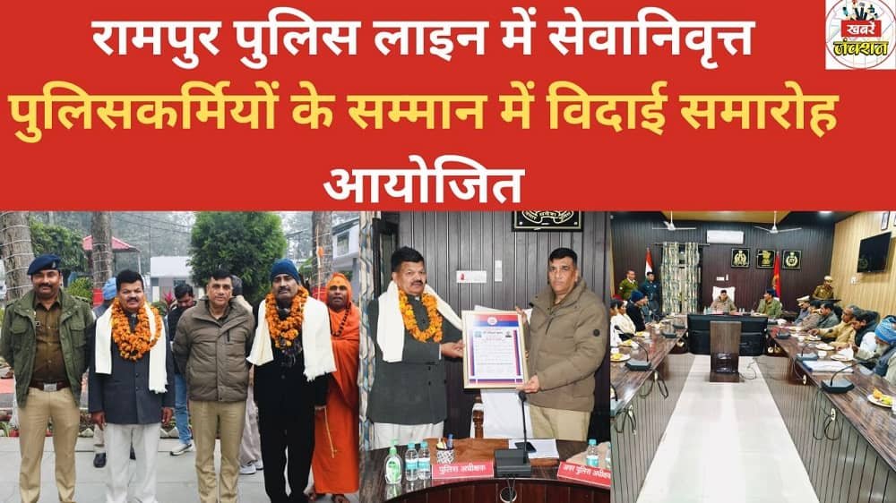 रामपुर।उत्तर प्रदेश पुलिस सेवा से सेवानिवृत्त होने वाले पुलिसकर्मियों के सम्मान में रिजर्व पुलिस लाइन परिसर में गरिमामय विदाई समारोह का आयोजन किया गया। समारोह के दौरान पुलिस अधीक्षक श्री विद्यासागर मिश्र एवं अपर पुलिस अधीक्षक श्री अनुराग सिंह ने सेवानिवृत्त हो रहे अधिकारियों/कर्मचारियों को सप्रेम उपहार भेंट कर तथा फूलमाला पहनाकर सम्मानपूर्वक विदाई दी। अधिकारियों ने कहा कि सेवानिवृत्त पुलिसकर्मियों ने अपने सेवाकाल के दौरान उत्तर प्रदेश पुलिस को महत्वपूर्ण योगदान दिया है, जिसे विभाग सदैव स्मरण रखेगा।