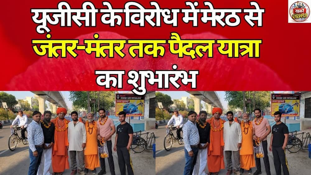 मेरठ। यूजीसी के विरोध में मेरठ से एक महत्वपूर्ण धार्मिक और सामाजिक यात्रा की शुरुआत की गई। ट्रांसपोर्ट नगर स्थित सीताराम की कुटी मंदिर से जंतर-मंतर, नई दिल्ली के लिए पैदल यात्रा का शुभारंभ किया गया। इस यात्रा का नेतृत्व महंत रणसिंहानंद गिरी और धर्मानंद गिरी कर रहे हैं। यह यात्रा 8 जून 2026 को जंतर-मंतर, नई दिल्ली पहुंचेगी।