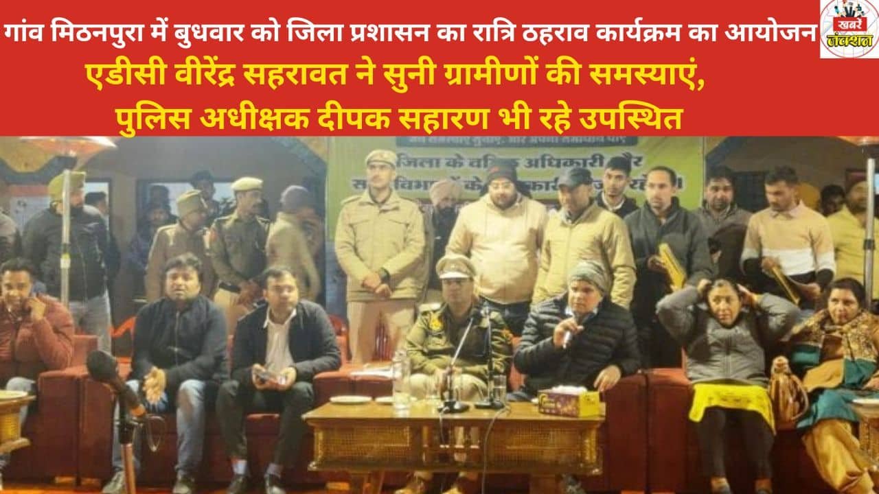 गांव मिठनपुरा में बुधवार को जिला प्रशासन का रात्रि ठहराव कार्यक्रम का आयोजन, एडीसी वीरेंद्र सहरावत ने सुनी ग्रामीणों की समस्याएं , पुलिस अधीक्षक दीपक सहारण भी रहे उपस्थित
