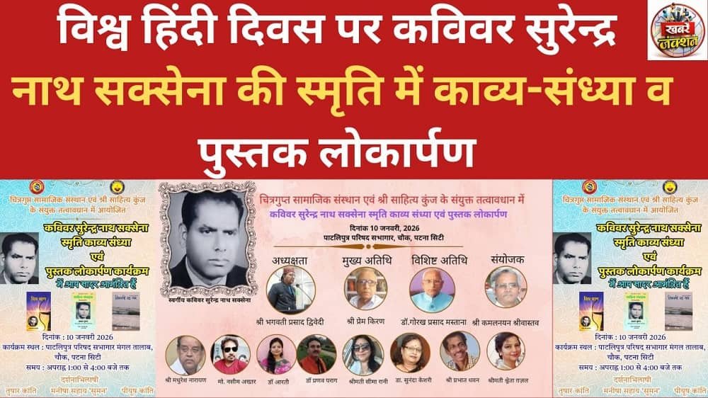 पटना: विश्व हिंदी दिवस के अवसर पर कविवर सुरेन्द्र नाथ सक्सेना की स्मृति में एक भव्य काव्य-संध्या एवं पुस्तक लोकार्पण कार्यक्रम का आयोजन किया जा रहा है। यह कार्यक्रम चित्रगुप्त सामाजिक संस्थान, पटना और श्री साहित्य कुंज, राँची के संयुक्त तत्वावधान में शनिवार, 10 जनवरी 2025 को पाटलिपुत्र परिषद, चौक, पटना सिटी में संपन्न होगा।
