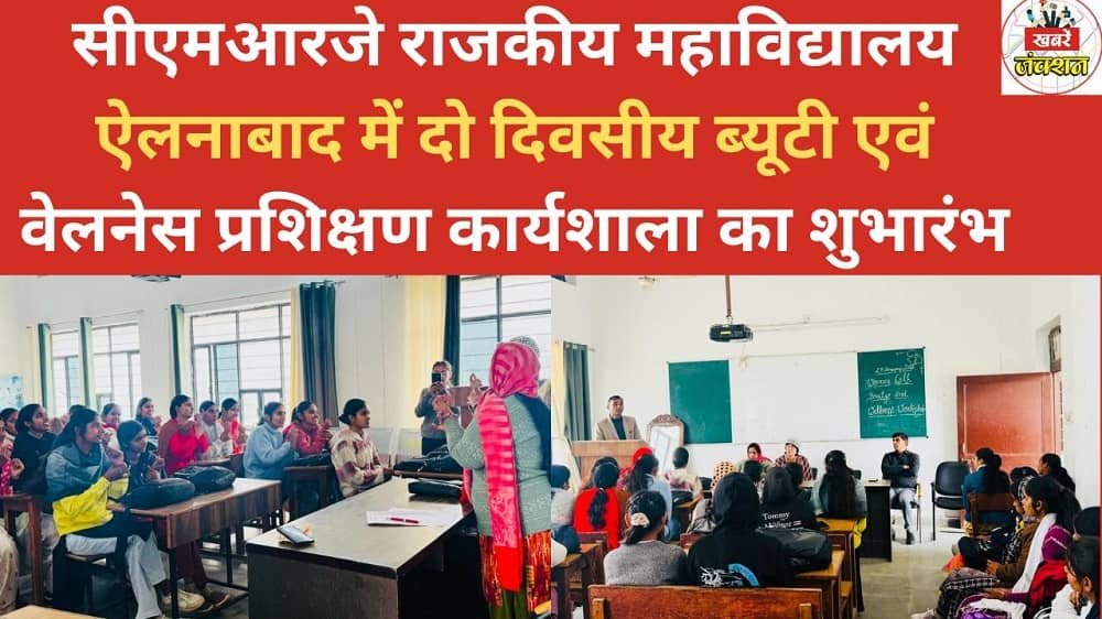 ऐलनाबाद, 27 जनवरी (एम पी भार्गव)।सीएमआरजे राजकीय महाविद्यालय ऐलनाबाद में छात्राओं के कौशल विकास एवं आत्मनिर्भरता को बढ़ावा देने के उद्देश्य से महिला प्रकोष्ठ तथा बेटी बचाओ बेटी पढ़ाओ योजना के अंतर्गत दिनांक 27 व 28 जनवरी को दो दिवसीय “ब्यूटी एवं वेलनेस” प्रशिक्षण कार्यशाला का शुभारंभ किया गया। कार्यक्रम की अध्यक्षता महाविद्यालय के प्राचार्य डॉ. सज्जन कुमार ने की, जबकि संयोजन का दायित्व प्रो. सुरेश कुमारी ने निभाया।