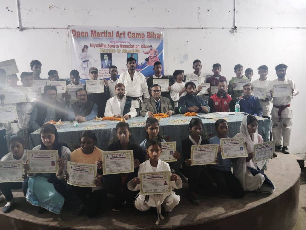 समस्तीपुर । रोसड़ा प्रखण्ड में स्थित यूआर कॉलेज रोसड़ा के मैदान में 11 दिसम्बर 2023 को नियुध्व स्पोर्टस एसोसिएशन बिहार के शाउलिंग- कुग-फू मार्शल आर्ट के सचिव करण कुमार मल्लिक ने दो दिवसीय ऑपन मार्शल आर्ट ट्रेनिग कैम्प कराटे एवं कुंग फू का आयोजन किया । जिसमें प्रशिक्षण हेतु यूआर कॉलेज के छात्र-छात्राओं समेत रोसड़ा, हसनपुर प्रखंड अन्य जिला के सरकारी एवं गैर सरकारी विद्यालय व कॉलेज के छात्र-छात्राएं सैकड़ो की संख्या में उपस्थित थे। मुख्य प्रशिक्षक करण कुमार मल्लिक कुंग-फू ब्लैक शत उव एक 2 ) एंड इन ब्लैक बेल्ट कराटे