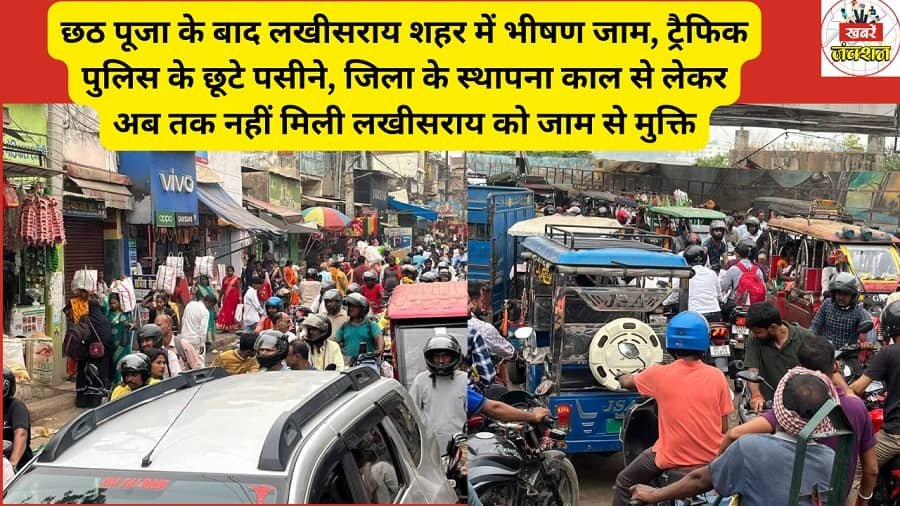 छठ पूजा के बाद लखीसराय शहर में भीषण जाम, ट्रैफिक पुलिस के छूटे पसीने, जिला के स्थापना काल से लेकर अब तक नहीं मिली लखीसराय को जाम से मुक्ति