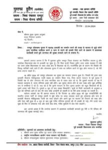 मुस्तफा हुसैन ने मुख्य चुनाव आयोग को लिखे पत्र में अवगत कराया है कि 19 अप्रैल को लोकसभा चुनाव का मतदान सम्पन्न हुआ है। जिसमें मेरे द्वारा सपा प्रत्याशी मौलाना मोहीबुल्लाह नदवी साहब का समर्थन किया गया, जिस कारण मतदान से पूर्व चुनाव में विरोधी पक्ष के लोग लगातार मेरे उपर मानसिक रूप से दबाव डाल रहे थे, कि तुमको भाजपा के पक्ष में मतदान करवाना है, वरना परिणाम अच्छे नही होंगें। अब चुनाव संपन्न होने के बाद उक्त लोग मुझे अनैतिक रूप से धमकियां दे रहें हैं। कह रहे है कि तुमने सपा के पक्ष में मतदान करा कर अच्छा नही किया है, तुमको 4 जून के बाद सबक सिखायेंगें। सूत्रों से मिली जानकारी के अनुसार 4 जून को परिणाम आने के बाद मेरे साथ कोई अनहोनी हो सकती है या मेरी हत्या करवाई जा सकती है।