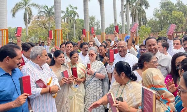 संविधान की प्रतियां अपने हाथों में लेकर उन्होंने “संविधान अमर रहे”, “हम संविधान बचाएंगे”, “हमारे लोकतंत्र को बचाओ” जैसे नारे लगाए।