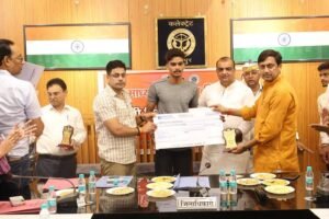 इस दौरान नेशनल गेम्स में प्रतिभाग करने वाले जनपद के 4 होनहार खिलाड़ियों को भी सम्मानित किया गया। हॉकी छात्रावास के खिलाड़ी अर्पित कुमार ने रजत पदक जीता, जिन्हें 25 हजार रुपए का चेक व स्मृति चिन्ह देकर सम्मानित किया गया। इसके अतिरिक्त 3 अन्य खिलाड़ी कमर फैयाज खान, मानवेंद्र प्रताप सिंह और अंशु पांडे ने कांस्य पदक जीतकर जनपद का नाम रौशन किया, जिन्हें 15-15 हजार रुपए का चेक व स्मृति चिन्ह देकर सम्मानित किया गया।