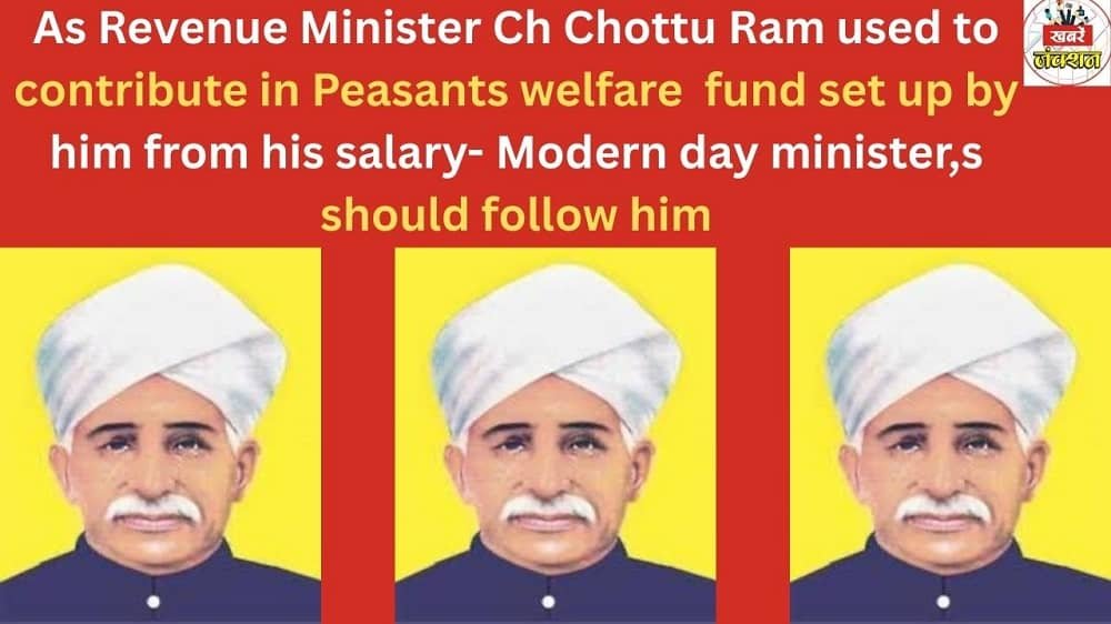 As Revenue Minister Ch Chottu Ram used to contribute in Peasants welfare fund set up by him from his salary- Modern day minister,s should follow him