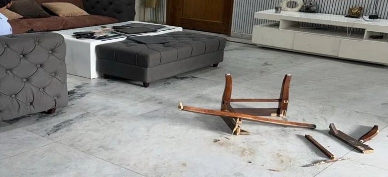 विडियो में दिखी टूटी कुर्सियां