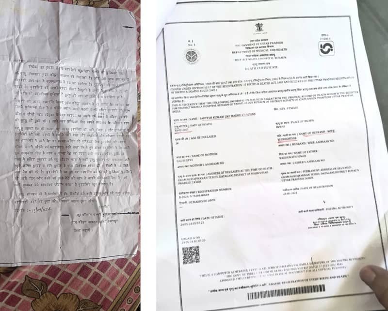 सर्वेश कुमारी उर्फ मधु चौहान ने आरोप लगाया कि उनके पति और म्याऊं ब्लॉक के सचिव सुनील बाबू सक्सेना ने मिलकर उनका फर्जी मृत्यु प्रमाण पत्र बनवा दिया है, ताकि उनकी जमीन को अवैध रूप से हड़पा जा सके। उनका बेटा इंद्रजीत सिंह चौहान उर्फ अंकित ने भी सचिव पर आरोप लगाते हुए कहा कि सचिव ने बिना किसी जांच के उनकी मां का फर्जी मृत्यु प्रमाण पत्र तैयार किया, जो कि कानून के विरुद्ध है।