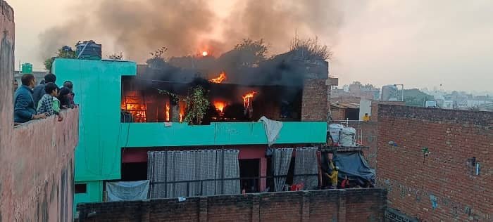 गली संकरी होने की वजह से दमकल की गाड़ियों को पहुंचने में मुश्किल हुई, लेकिन स्थानीय लोगों ने बाल्टियों से पानी डालकर 70% तक आग पर काबू पाया।