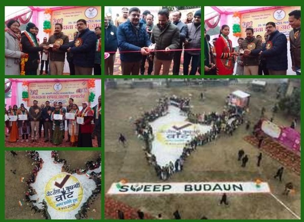 बदायूँ : 14वें राष्ट्रीय मतदाता दिवस के अवसर पर राजकीय महाविद्यालय आवास विकास में मतदाता शपथ ग्रहण समारोह का शुभारंभ जिलाधिकारी मनोज कुमार ने दीप प्रज्वलन कर किया। उन्होंने कहा कि सभी मतदाता आगामी निर्वाचन में अपने मताधिकार का प्रयोग अवश्य करें। उन्होंने निर्वाचन एवं स्वीप गतिविधियों की फोटो प्रदर्शनी का फीता काटकर व आगामी लोकसभा चुनाव 2024 में जनपद बदायूं में शत प्रतिशत मतदान हेतु हस्ताक्षर कर हस्ताक्षर अभियान का शुभारंभ किया।
