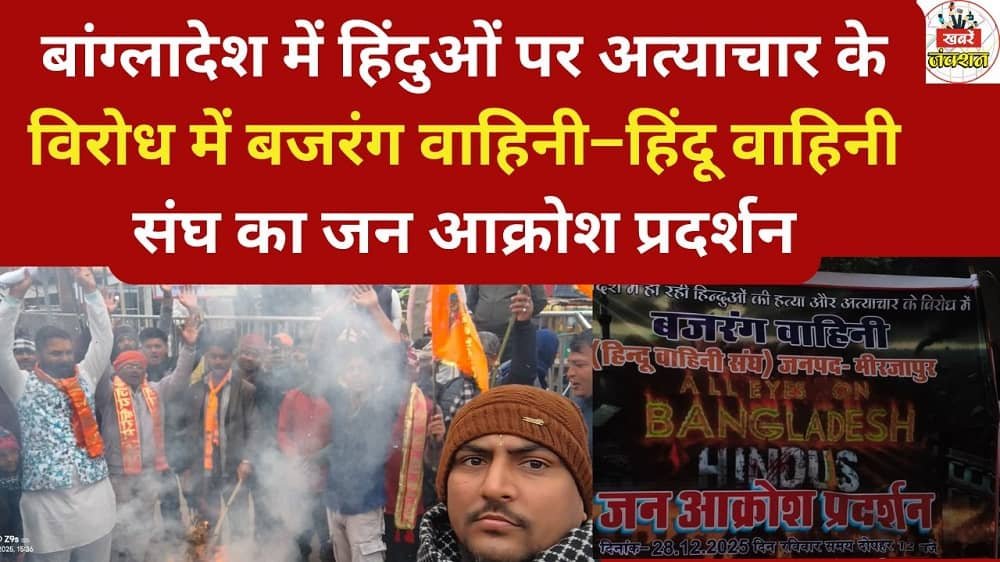 मिर्जापुर। बांग्लादेश में हिंदू समुदाय पर हो रहे कथित अत्याचारों के विरोध में शुक्रवार को मिर्जापुर जिले के नारायणपुर–चुनार बाजार में बजरंग वाहिनी हिंदू वाहिनी संघ के तत्वावधान में एक विशाल जन आक्रोश प्रदर्शन एवं रैली का आयोजन किया गया। इस दौरान प्रदर्शनकारियों में बांग्लादेश सरकार, विशेषकर वहां की अंतरिम सरकार के प्रति गहरा आक्रोश देखने को मिला।