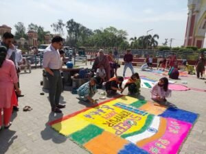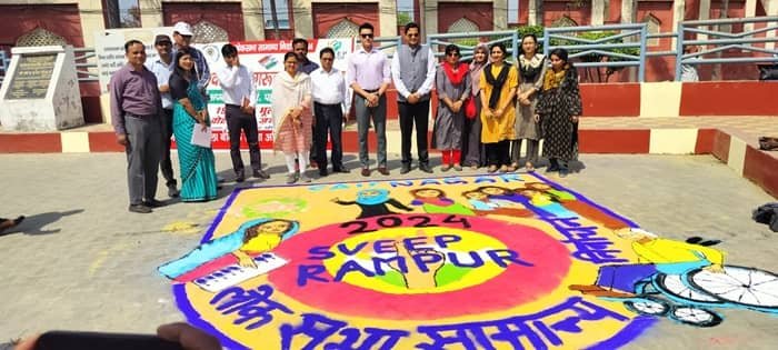 रामपुर। लोकसभा सामान्य निर्वाचन 2024 में स्वीप कार्यक्रम के अंतर्गत मतदाता जागरूकता एवं मतदान प्रतिशत में वृद्धि करने हेतु बेसिक शिक्षा विभाग द्वारा मतदान रंगोली प्रतियोगिता एवं जिला प्रोबेशन कार्यालय द्वारा माध्यमिक विद्यालयों के सहयोग से मेहंदी प्रतियोगिता का आयोजन गाँधी समाधि स्थित शहीद स्मारक स्थल पर किया गया।