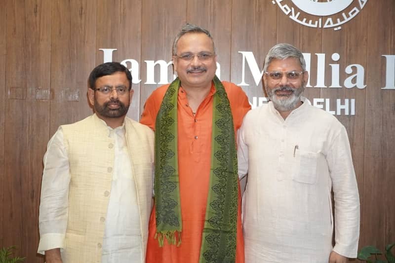 इस दौरान डॉ. पुष्कर मिश्र ने जामिया मिलिया इस्लामिया विश्वविद्यालय के कुलपति व प्रख्यात विद्वान प्रो. मज़हर आसिफ से भी मुलाकात की। इस भेंट में साहित्य, सांस्कृतिक संरक्षण और शैक्षिक सहयोग के विविध आयामों पर सार्थक संवाद हुआ।