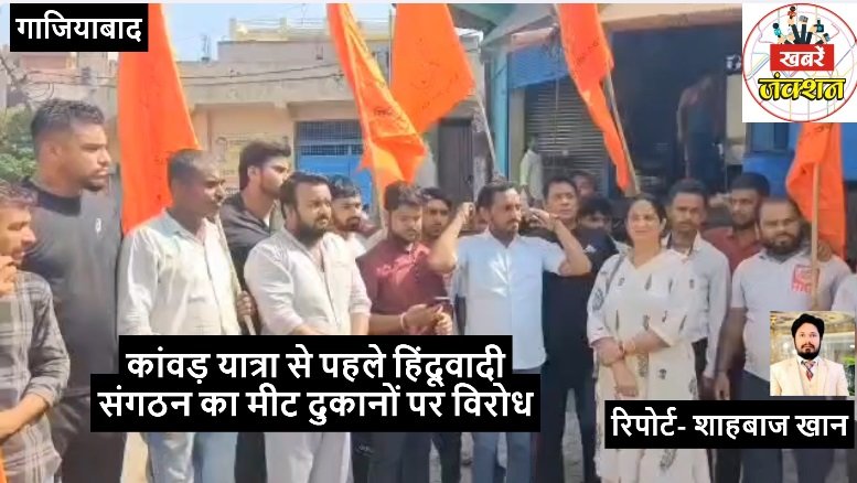 गाजियाबाद: 4 जुलाई को गाजियाबाद के नंदग्राम थाना क्षेत्र में उस समय हलचल मच गई जब हिंदूवादी संगठन के कार्यकर्ता भगवा झंडा लेकर क्षेत्र की मीट दुकानों पर पहुंचे और कांवड़ यात्रा को लेकर 11 जुलाई से दुकानें बंद करने की चेतावनी दी।