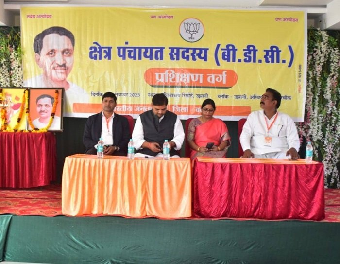 उझानी। ब्लॉक उझानी, कादरचौक और अंबियापुर के क्षेत्र पंचायत सदस्य (बी.डी.सी) का प्रशिक्षण वर्ग उझानी के शिवाश्रय रिसोर्ट में हुआ, जिसका शुभारंभ पं. दीनदयाल उपाध्याय एवं डॉ. श्यामा प्रसाद मुखर्जी, भारत माता के चित्र पर पुष्प अर्पित एवं दीप प्रज्वलित कर वंदे मातरम गीत के साथ क्षेत्रीय उपाध्यक्ष हर्षवर्धन आर्य, बदायूँ सांसद संघमित्रा मौर्य, ब्लॉक प्रमुख उझानी शिशुपाल शाक्य, ब्लॉक प्रमुख कादरचौक वीरेंद्र सिंह राजपूत ने शुभारंभ किया।
