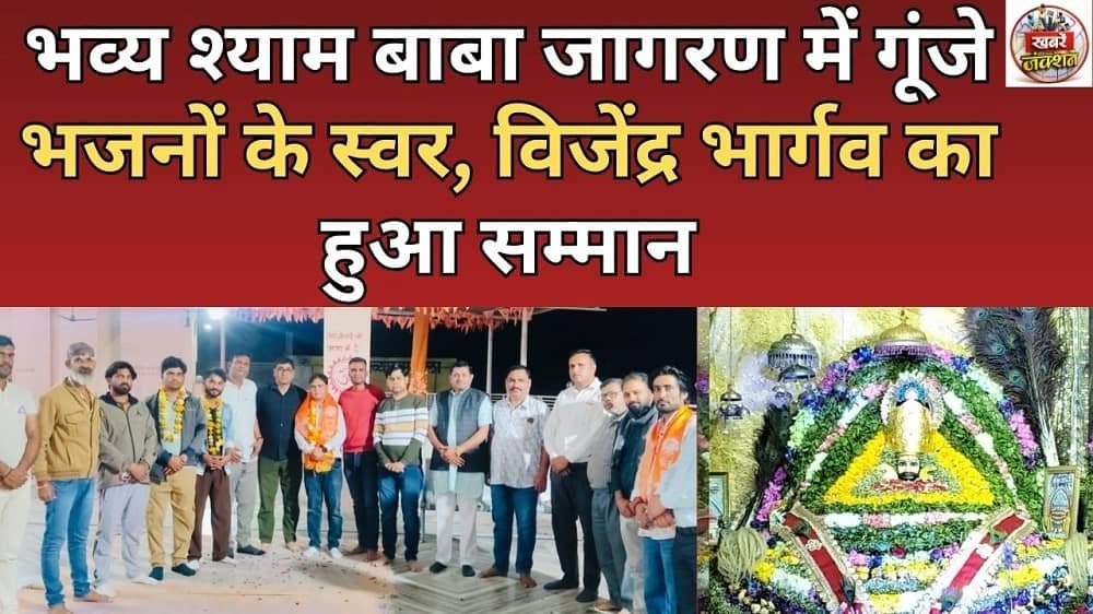 कुचामन सिटी, राजस्थान (डॉ. एम.पी. भार्गव, विशेष संवाददाता) कुचामन सिटी में श्याम बाबा के पावन जागरण का आयोजन अत्यंत श्रद्धा और उत्साह के साथ संपन्न हुआ। इस अवसर पर राजस्थान के सुप्रसिद्ध भजन गायक Vijendra Bhargav (माधोगढ़) ने अपने मधुर भजनों से श्रद्धालुओं को भाव-विभोर कर दिया। पूरी रात भक्ति रस की सरिता बहती रही और श्रद्धालु भजनों पर झूमते नजर आए।