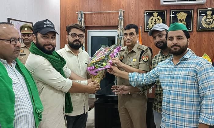 रामपुर में भारतीय किसान यूनियन एकताशक्ति के राष्ट्रीय सचिव डॉ. मतीन खान, जिला अध्यक्ष डॉ. उवैस खान के नेतृत्व में किसानों के एक शिष्टमंडल ने कलेक्ट्रेट परिसर में पहुंच कर नवांगतुक पुलिस अधीक्षक विद्यासागर मिश्रा का बुके भेंट कर स्वागत किया गया, रामपुर आगमन पर उनको बधाई दी, किसानों के शिष्टमंडल ने पुलिस अधीक्षक से रामपुर में कानून व्यवस्था के बारे में बताया व जिस पर पुलिस कप्तान ने उचित कार्यवाही करने का आश्वासन दिया व ज़िले में हो रही अपिर्य घटनाओं पर लगाम लगाने व दोषियों को सज़ा दिलाने के सख़्ती से निर्देश दिये, इस मौके पर मण्डल मीडिया प्रभारी मो जुनैद, डॉ बिलाल उन नबी , अकमल भाई, बिलाल खान आदि किसान मौजूद रहे.
