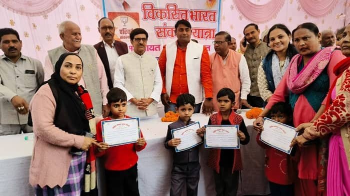 मीरापुर थानाक्षेत्र के ग्राम मुझेड़ा में पहुँची विकसित भारत संकल्प यात्रा का ग्राम प्रधान इश्तियाक राव व ग्राम सचिव शिवम कौशिक के नेतृत्व में ग्रामीणों ने पुष्पवर्षा कर स्वागत किया।इस दौरान आयोजित कार्यक्रम को संबोधित करते हुए जिला पंचायत अध्यक्ष डा. वीरपाल निर्वाल ने महिलाओं, गरीबों, किसानों, बेटियों आदि के कल्याणार्थ योजनाओं के विषय में विस्तार से बताया। यहां पर लगे हुए स्टाल का निरीक्षण तथा महिलाओं की गोद भराई रस्म तथा लाभर्थियों को आयुष्मान कार्ड वितरित किए। उन्होंने कहा कि विकास की योजनाएं देश के हर पात्र नागरिक के लिए है इसलिए विकसित भारत का संकल्प पूरा करने में अधिकारी योजनाओं को ईमानदारी से लागू करें।ग्राम प्रधान मुझेडा मौ0 इश्तियाक राव ,रामकुमार शर्मा, वरिष्ठ भाजपा नेता नजर सिंह गुर्जर, जयकरण सिंह,मीरापुर भाजपा मंडल अध्यक्ष सचिन ठाकुर,सम्भलहेड़ा मण्डल अध्यक्ष इंदरसिंह कश्यप, रविन्द्र चौधरी आदि उपस्थित रहे।