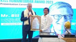 भुवनेश्वर : माइक्रोसॉफ्ट के सह संस्थापक तथा वैश्विक समाज सेवी, बिल एंड मेलिंडा गेट्स फाउंडेशन के सह-अध्यक्ष बिल गेट्स को उनके सामाजिक कार्यों के लिए के आइएसएस मानवतावादी सम्मान 2023 से सम्मानित किया गया। यह समारोह 28 फरवरी, 2024 को ओडिशा की राजधानी भुवनेश्वर में हुआ, जिसमें वैश्विक स्वास्थ्य और शिक्षा को बढ़ाने और असमानता को कम करने के उद्देश्य से नवीन प्रौद्योगिकी समाधानों के माध्यम से जलवायु परिवर्तन को संबोधित करने में श्री गेट्स के अद्वितीय योगदान को स्वीकार किया गया।
