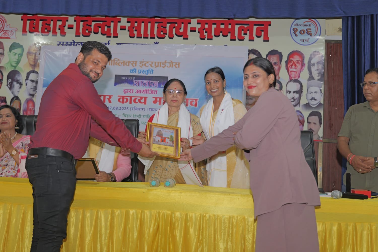 पटना: बिहार की ऐतिहासिक धरा पर साहित्य की नई गूंज सुनाई दी जब बिहार हिंदी साहित्य सम्मेलन के प्रांगण में “आज उठी है आवाज़” एवं मोब्लिक्स इंटरप्राइजेज के सौजन्य से बिहार काव्य महोत्सव का भव्य आयोजन किया गया। यह आयोजन न केवल साहित्य प्रेमियों का उत्सव था, बल्कि युवा रचनाकारों की सृजनात्मक ऊर्जा का जीवंत प्रदर्शन भी।