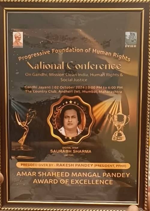 प्रत्येक वर्ष शहीद मंगल पांडेय अवार्ड गुजरात की PFHR फाउंडेशन द्वारा मुम्बई के बेस्ट कंट्री क्लब के वी आई पी लॉन में बहुत ही बड़े पैमाने पर किया जाता हैं , जो चुनी हुई हस्तियो , पॉलिटिशियन , फ़िल्म स्टार , सोशल वर्कर जैसे गणमान्य व्यक्तियों को सम्मानित करती है और इस बार ये है स्वर्ग हमारा के ट्रेलर से प्रभावित होके डिजिटल स्टार सौरभ शर्मा को सम्मानित करने का निर्णय लिया.