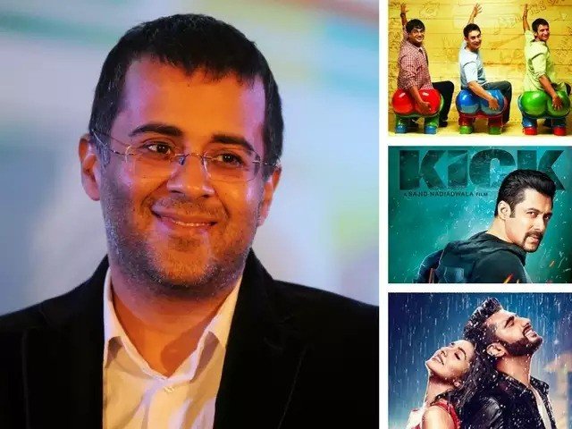 चेतन के किताबों पर बनी फिल्मों में आमिर खान की ‘3 इडियट्स’, सलमान खान और कैटरीना की ‘किक’, आलिया भट्ट तथा अर्जुन कपूर की ‘2 स्टेट्स’ और सुशांत सिंह राजपूत की फिल्म ‘काय पो छे!’ के नाम शामिल हैं।