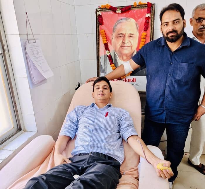 समाजवादी पार्टी संस्थापक भारत के पूर्व रक्षामंत्री एवं उत्तर प्रदेश के पूर्व मुख़्यमंत्री धरती पुत्र मुलायम सिंह यादव के पुण्य तिथि के मौके पर दर्जनों समाजवादी पार्टी के कार्यकर्ताओं ने किया रक्तदान करके उन्हें सच्ची श्रद्धांजलि दी । सांसद आदित्य यादव के निजी प्रतिनिधि अनिल गोस्वामी के नेतृत्व में धरती पुत्र पूर्व मुख्यमंत्री व पूर्व रक्षामंत्री मुलायम सिंह यादव के पुण्य तिथि के मौके पर समाजवादी पार्टी के दर्जनों कार्यकर्ताओं ने रक्तदान करके अपने प्रिय नेता को सच्ची श्रद्धांजलि अर्पित करते हुए कहा कि “एक सफल नेतृत्व वह व्यक्ति कर सकता है जिसके पीछे हजारो दुआएँ काम करती है ”