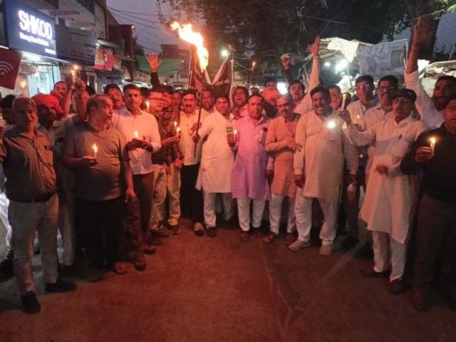 पहलगाम हत्याकांड के विरोध में तिजारा में कैंडल मार्च