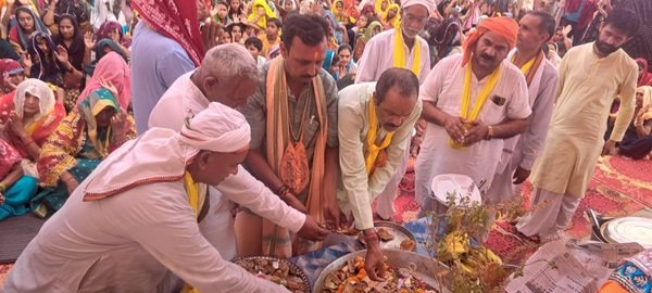 बुधवार को क्षेत्र के गाँव भराना स्थित नर्मदेआश्रम पर चल रही श्री मदभागवत कथा के पाँचवे दिन कथा व्यास आचार्य राकेश कृष्ण शास्त्री ने गोवर्धन महाराज के प्रसंग पर विस्तार से प्रकाश डालते हुए कहा कि इंद्रदेव के प्रकोप से बृजवासियों की रक्षा करने के लिए भगवान श्री कृष्ण ने पूरे गोवर्धन पर्वत को बाएं हाथ से उठा लिया और उसे एक छात्र की तरह उठा रखा। श्री कृष्ण ने बृजवासियों को मूसलाधार वर्षा से बचाने के लिए 7 दिनों तक अपनी छोटी ऊँगली पर उठा कर रखा। इसके बाद इंद्रदेव को एहसास हो गया श्री कृष्ण कोई और नहीं साक्षात् स्वयं नारायण के अवतार हैं। कथा के मध्य मे सभी भक्तो ने आयोजन समति के सभी पदाधिकारीओ ने गोवर्धन पर्वत की पूजा कर छपन्न भोग लगाया। इस मोके पर श्री सीतासरन महाराज, आचार्य पंडित आशीष उपाध्याय वशिष्ठ, सभी दंडी स्वामी, सुनील टेंट वाले, राजकुमार शर्मा, जगत प्रधान, धर्मेंद्र प्रधान, राज मुखिया, पवन खटाना, राजकुमार खटाना, रोहित प्रधान अहित आयोजन समति के सभी पदाधिकारी उपस्थित रहे।