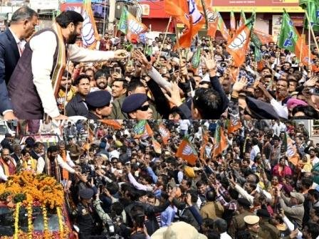 मुख्यमंत्री नायब सिंह सैनी ने किया भव्य रोड शो, हरियाणा में भाजपा की ट्रिपल इंजन सरकार का दावा