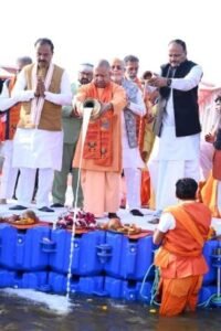 मुख्यमंत्री योगी आदित्यनाथ ने मंत्रिमंडल के साथ त्रिवेणी संगम में डुबकी लगाकर लोक कल्याण की कामना की