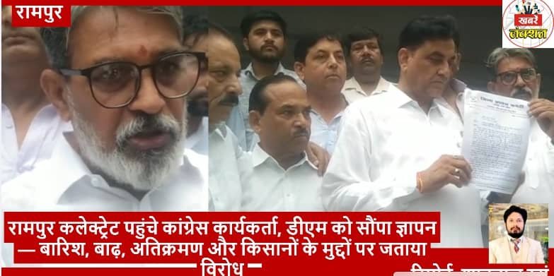 रामपुर कलेक्ट्रेट पहुंचे कांग्रेस कार्यकर्ता, डीएम को सौंपा ज्ञापन: बारिश, बाढ़, अतिक्रमण और किसानों के मुद्दों पर जताया विरोध