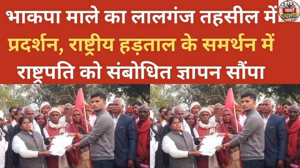 भाकपा माले का लालगंज तहसील में प्रदर्शन, राष्ट्रीय हड़ताल के समर्थन में राष्ट्रपति को संबोधित ज्ञापन सौंपा