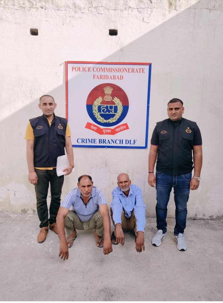 पुलिस प्रवक्ता ने बताया कि अपराध शाखा DLF की टीम ने कार्रवाई करते हुए बल्लू (57) व विनोद कुमार (50) वासी गांव छांयसा जिला फरीदाबाद को गिरफ्तार किया है।