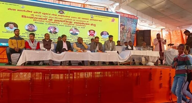 सोरों (कासगंज)। मेला मार्गशीर्ष सोरों शूकरक्षेत्र महोत्सव–2025 के पावन अवसर पर दिव्यांगजनों के सामाजिक समावेशन को सशक्त बनाने के उद्देश्य से दिव्यांग सांस्कृतिक सामूहिक सम्मेलन का आयोजन किया गया। यह कार्यक्रम मेला मार्गशीर्ष में लगे पंडाल में सोमवार दोपहर एक बजे श्री वराह जन सेवा दिव्यांग समिति सोरों के तत्वावधान में संपन्न हुआ।