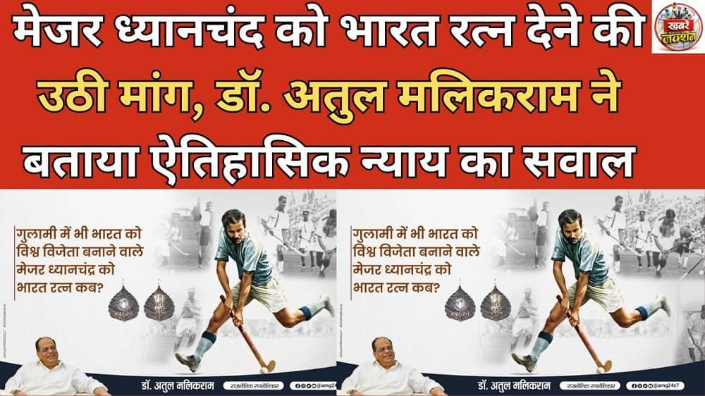 भारत के महान हॉकी खिलाड़ी मेजर ध्यानचंद को देश का सर्वोच्च नागरिक सम्मान भारत रत्न देने की मांग एक बार फिर जोर पकड़ रही है। राजनीतिक रणनीतिकार डॉ. अतुल मलिकराम ने कहा कि गुलामी के दौर में भी भारत को विश्व विजेता बनाने वाले इस महान खिलाड़ी को अब तक भारत रत्न न मिलना एक ऐतिहासिक विडंबना है।