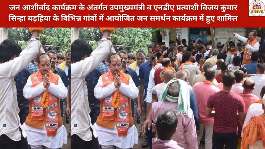 जन आशीर्वाद कार्यक्रम के अंतर्गत उपमुख्यमंत्री व एनडीए प्रत्याशी विजय कुमार सिन्हा बड़हिया के विभिन्न गांवों में आयोजित जन समर्थन कार्यक्रम में हुए शामिल