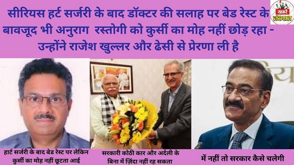 सीरियस हार्ट सर्जरी के बाद डॉक्टर की सलाह पर दो महीने के बेड रेस्ट पर सीएस अनुराग रस्तोगी ड्यूटी जॉइन करेंगे – एक पुराना क़िस्सा याद आया i एक्सीडेंट में पंजाब के एक मंत्री की गर्दन टेडी हो गई i किसी शुभचिंतक ने कहा सरदार जी सेहत ठीक नहीं है i हुन मंत्री पद छोड़ दो i हुन सरदार जी ने कहा “ काका वज़ीर रहूँगा तो सेहत अपने आप ठीक हो जाएगी i वज़ीर नहीं रहा तो कुता भी पूछने नहीं आएगा i अब जनाब रस्तोगी साहिब दुनियादारी को अच्छी तरह जानते है i सीएस के टॉप पद तक पहुँचे i फिर एक साल की एक्सटेंशन का रिकॉर्ड बनाया i अब सीएस रहेंगे तो सेहत ख़ुद ठीक हो जाएगी i फिर अगर सीएम साहिब मेहरबान रहे तो रिटायरमेंट के बाद कोई पद मिल जाएगा i वेसे भी राइट टू सर्विस कमीशन के चेयरमैन का पद ख़ाली हो रहा है i जनाब राजेश खुल्लर और ढेसी साहिब भी कुर्सी से चिपके है iये समझते है कि अगर ये नहीं रहे तो सरकार नहीं चलेगी i खुल्लर साहिब की मैडम एचपीएससी कीं मेम्बर i पहले आईएएस बनवाने की कोशिश की i रिटायरमेंट के बाद सीएम के सीपीएस i डेसी साहिब ने तो कमाल कर दिया i चीफ सेक्रेटरी i फिर किसी अथॉरिटी के चेयरमैन i फिर सीएम के सीपीएस i फिर घोड़ी से उत्तार कर गधी पर बिठा गुरुग्राम में कोई ओहदा दे दिया i दुमछलाi हरियाणा में एक कहावत है i अगर हांडी अपना मुँह खोल दे तो कूते को सबर से खाना चाहिए ताकि जन्म ख़राब न हो i