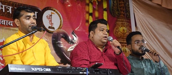 गणेश उत्सव कि पूर्व संध्या में खूब भजनों की आनंद वर्षा हुई। भक्तो ने झूम झूम कर भजनों का आनंद लिया। भजन संध्या में आमंत्रित भजन गायक आशु चौहान, अमन शर्मा, पारस चितकारा ने अपने भजनों के भावों से भक्तों को भाव विभोर कर दिया।