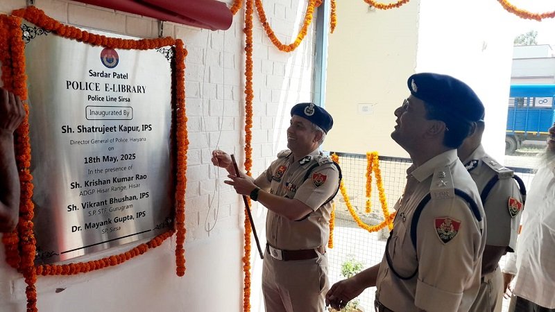 ऐलनाबाद: ( एम पी भार्गव ) हरियाणा के पुलिस महानिदेशक (डीजीपी) शत्रुजीत कपूर ने आज पुलिस जिला सिरसा में प्रदेश की 17वीं ई-लाइब्रेरी का विधिवत उद्घाटन किया। ‘सरदार पटेल पुलिस ई-लाइब्रेरी’ के नाम से स्थापित इस केंद्र का निर्माण लगभग 28 लाख रुपये की लागत से किया गया है। उद्घाटन समारोह में विभिन्न सरकारी एवं डिग्री कॉलेजों के विद्यार्थियों के साथ डीएवी पुलिस पब्लिक स्कूल के छात्र-छात्राएं भी बड़ी संख्या में उपस्थित रहे।