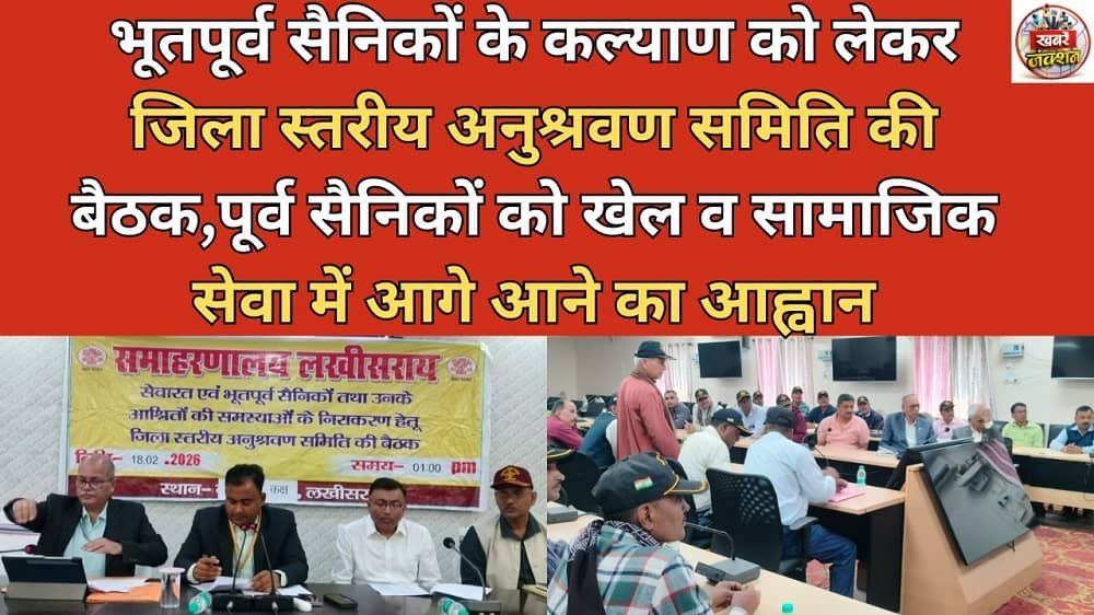 लखीसराय(सरफराज आलम) जिला मुख्यालय स्थित समाहरणालय के मंत्रणा कक्ष में सेवारत एवं भूतपूर्व सैनिकों तथा उनके आश्रितों की समस्याओं के समाधान के उद्देश्य से जिला स्तरीय अनुश्रवण समिति की बैठक आयोजित की गई। बैठक की अध्यक्षता जिलाधिकारी मिथिलेश मिश्र ने की।