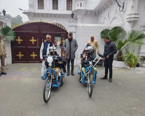 रामपुर। रामपुर जिलाधिकारी रविन्द्र कुमार माँदड़ ने अपने आवास पर 2 दिव्यांगजनों को बैट्री चालित ट्राई साईकिल प्रदान किया। तहसील शाहबाद के रहने वाले दो दिव्यांगजन जिलाधिकारी को कलेक्ट्रेट परिसर में मिले और उनसे बैटरी से चलने वाली ट्राई साइकिल प्रदान करने के लिए अपनी मांग रखी।